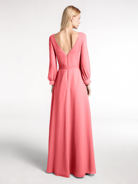 Babaroni MaxineVestido de chiffon con mangas de obispo y lazo con escote en V Sandía Tallas Grandes