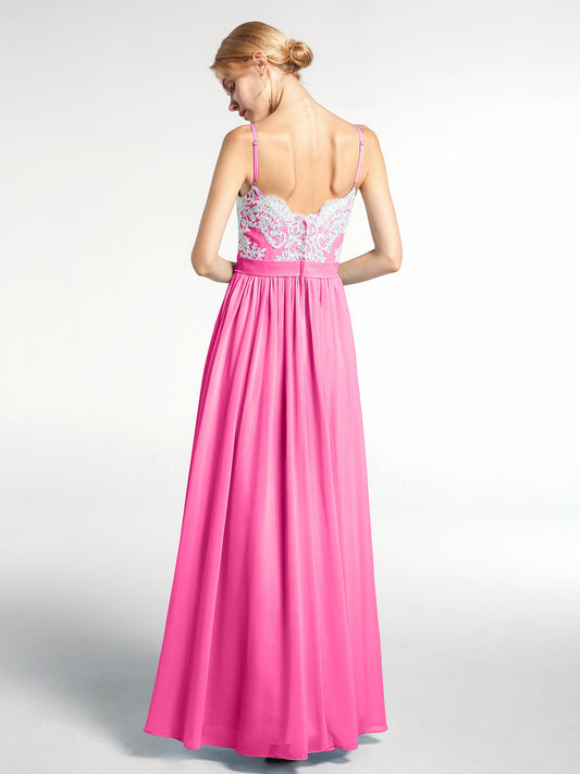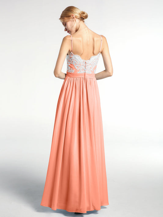 Babaroni KayVestido de chiffon con tirantes finos y abertura frontal con encaje marfil Atardecer