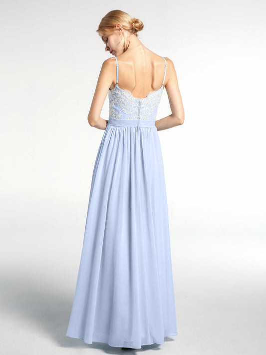 Babaroni KayVestido de chiffon con tirantes finos y abertura frontal con encaje marfil Azul Cielo Tallas Grandes