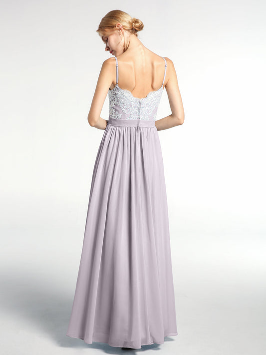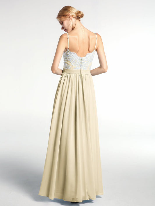 Babaroni KayVestido de chiffon con tirantes finos y abertura frontal con encaje marfil Champán Tallas Grandes