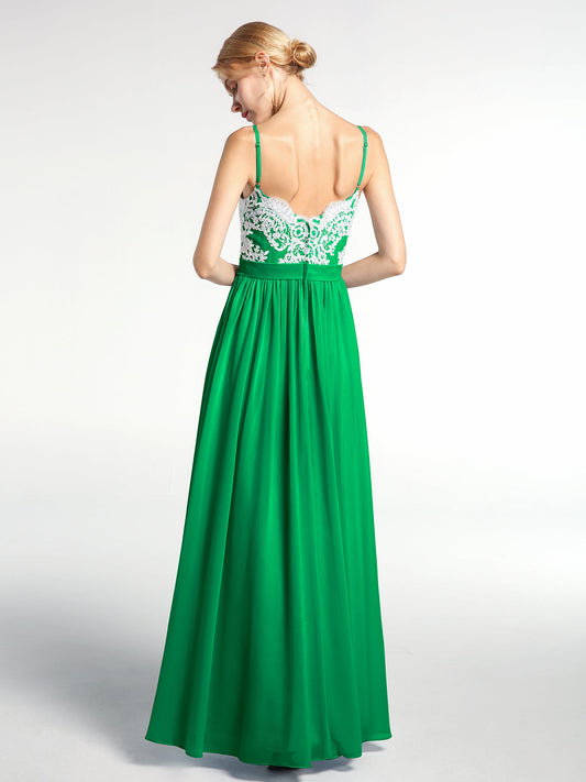 Babaroni KayVestido de chiffon con tirantes finos y abertura frontal con encaje marfil Esmeralda