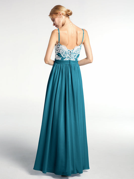 Babaroni KayVestido de chiffon con tirantes finos y abertura frontal con encaje marfil Azul tinta Tallas Grandes