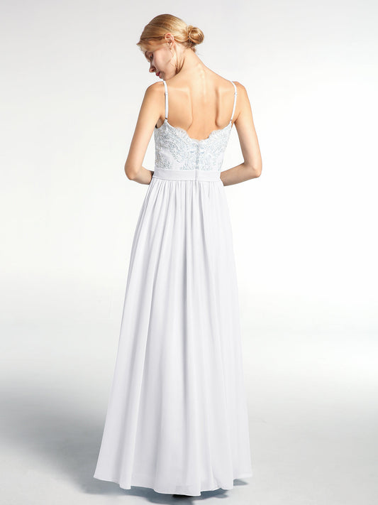 Babaroni KayVestido de chiffon con tirantes finos y abertura frontal con encaje marfil Esmeralda Tallas Grandes