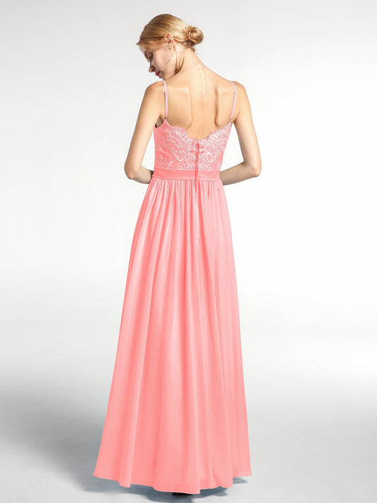 Babaroni KayVestido de chiffon con tirantes finos y abertura frontal con encaje marfil Coral