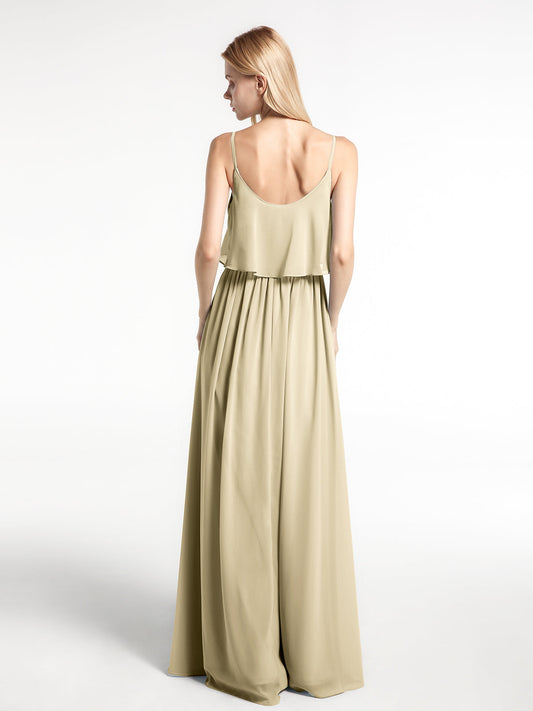Babaroni MartinaVestido de chiffon con tirantes finos y cuerpo de capas con escote tipo scoop Champán Tallas Grandes