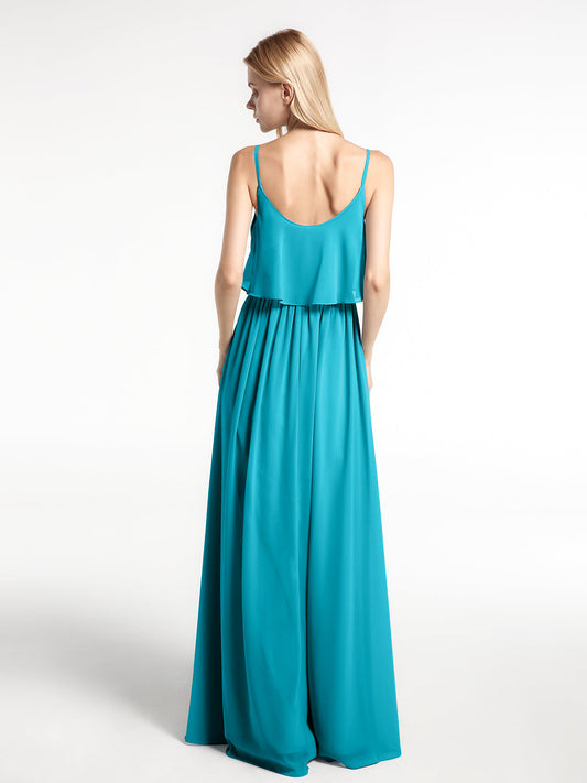 Babaroni MartinaVestido de chiffon con tirantes finos y cuerpo de capas con escote tipo scoop Esmeralda