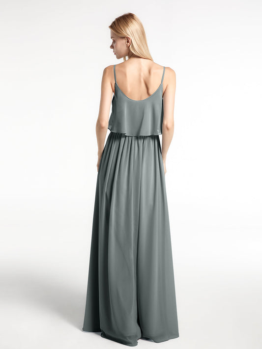 Babaroni MartinaVestido de chiffon con tirantes finos y cuerpo de capas con escote tipo scoop Gris Acero Tallas Grandes