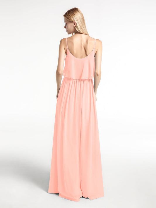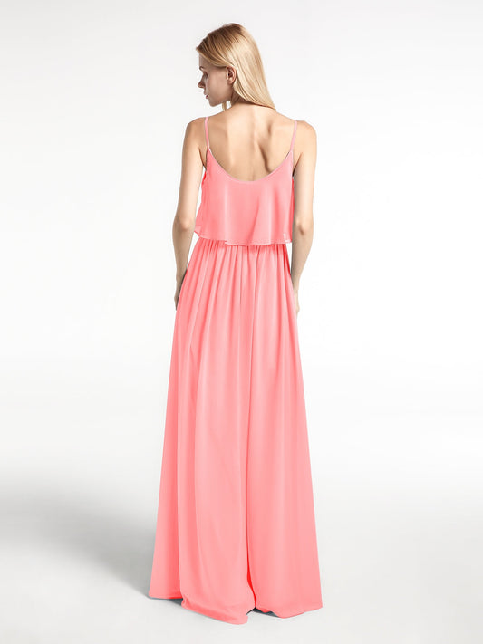 Babaroni MartinaVestido de chiffon con tirantes finos y cuerpo de capas con escote tipo scoop Coral