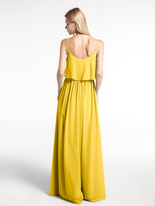 Babaroni MartinaVestido de chiffon con tirantes finos y cuerpo de capas con escote tipo scoop Caléndula Tallas Grandes