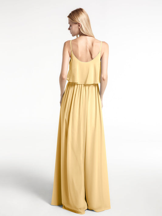 Babaroni MartinaVestido de chiffon con tirantes finos y cuerpo de capas con escote tipo scoop Oro Tallas Grandes