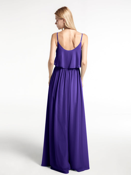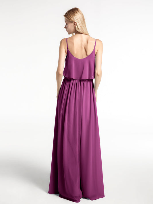 Babaroni MartinaVestido de chiffon con tirantes finos y cuerpo de capas con escote tipo scoop Orquídea Tallas Grandes