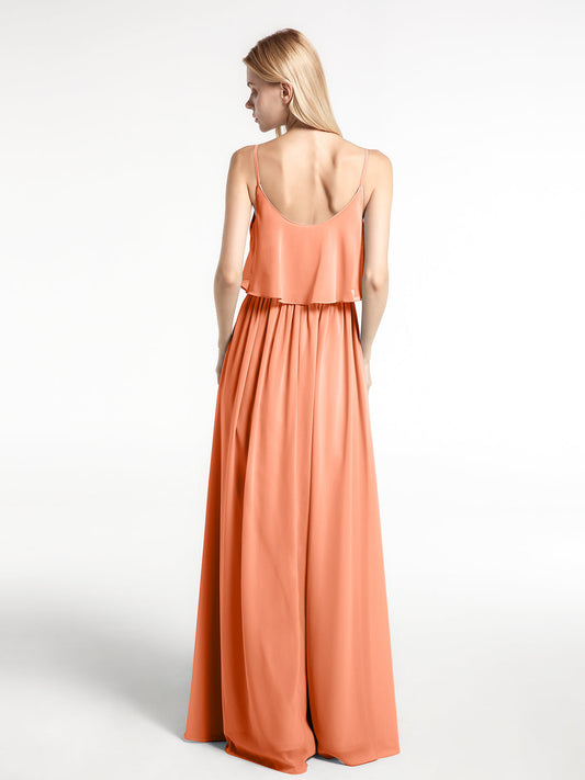 Babaroni MartinaVestido de chiffon con tirantes finos y cuerpo de capas con escote tipo scoop Papaya Tallas Grandes