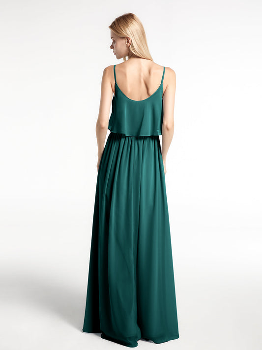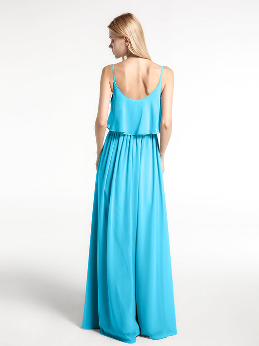 Babaroni MartinaVestido de chiffon con tirantes finos y cuerpo de capas con escote tipo scoop Pavo real Tallas Grandes