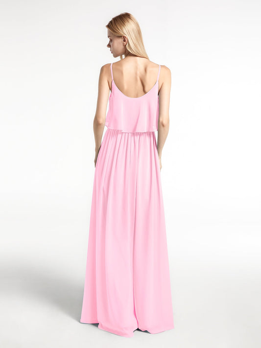 Babaroni MartinaVestido de chiffon con tirantes finos y cuerpo de capas con escote tipo scoop Rosa Claro Tallas Grandes