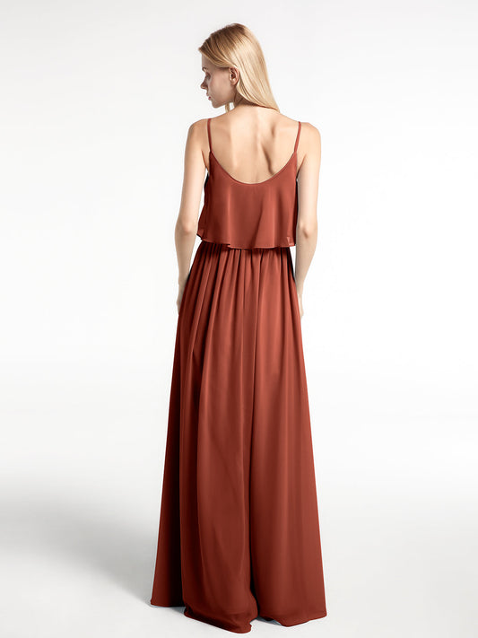 Babaroni MartinaVestido de chiffon con tirantes finos y cuerpo de capas con escote tipo scoop Óxido Tallas Grandes