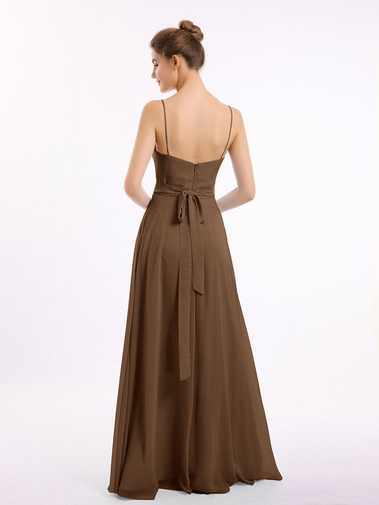 Babaroni FredaVestido de chiffon con tirantes finos y escote en corazón Marrón Tallas Grandes