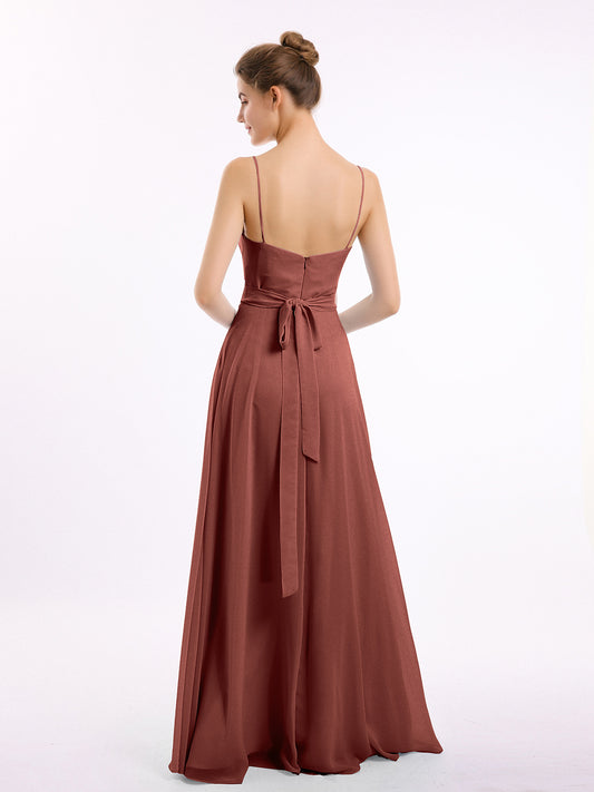 Babaroni FredaVestido de chiffon con tirantes finos y escote en corazón Terracota Tallas Grandes