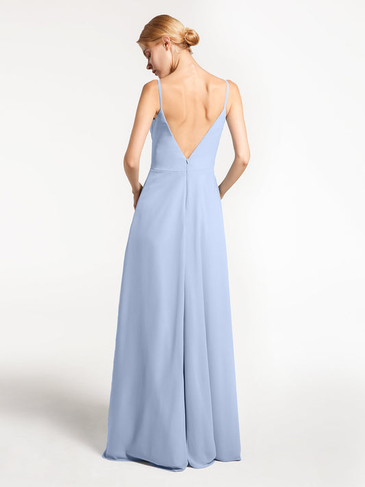 Babaroni DianaVestido de chiffon con tirantes finos y escote en forma de corazón con detalle en cascada Azul Cielo