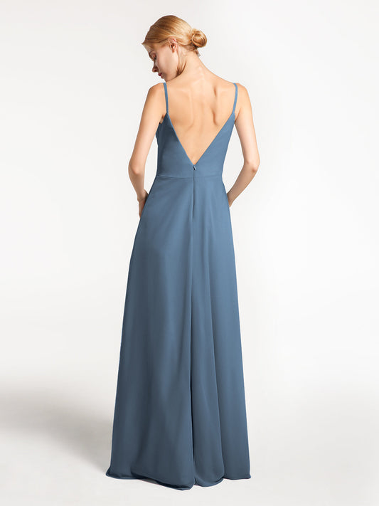 Babaroni DianaVestido de chiffon con tirantes finos y escote en forma de corazón con detalle en cascada Azul Pizarra