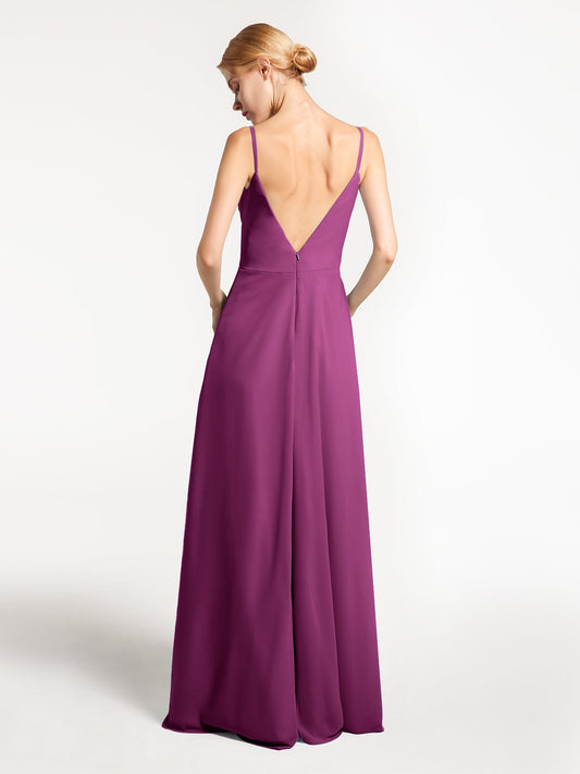 Babaroni DianaVestido de chiffon con tirantes finos y escote en forma de corazón con detalle en cascada Orquídea