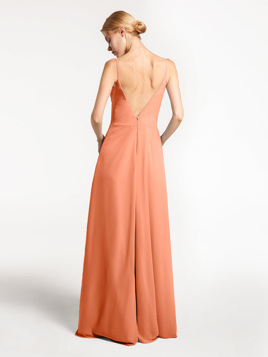 Babaroni DianaVestido de chiffon con tirantes finos y escote en forma de corazón con detalle en cascada Papaya Tallas Grandes