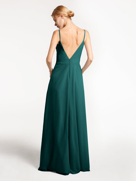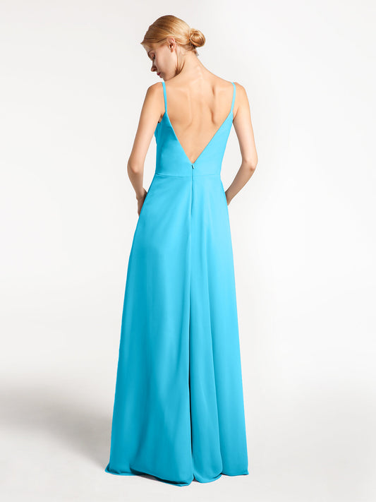Babaroni DianaVestido de chiffon con tirantes finos y escote en forma de corazón con detalle en cascada Pavo real