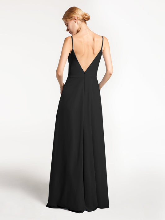 Babaroni DianaVestido de chiffon con tirantes finos y escote en forma de corazón con detalle en cascada Negro