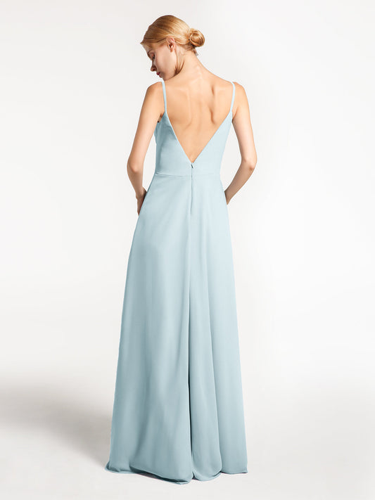 Babaroni DianaVestido de chiffon con tirantes finos y escote en forma de corazón con detalle en cascada Niebla
