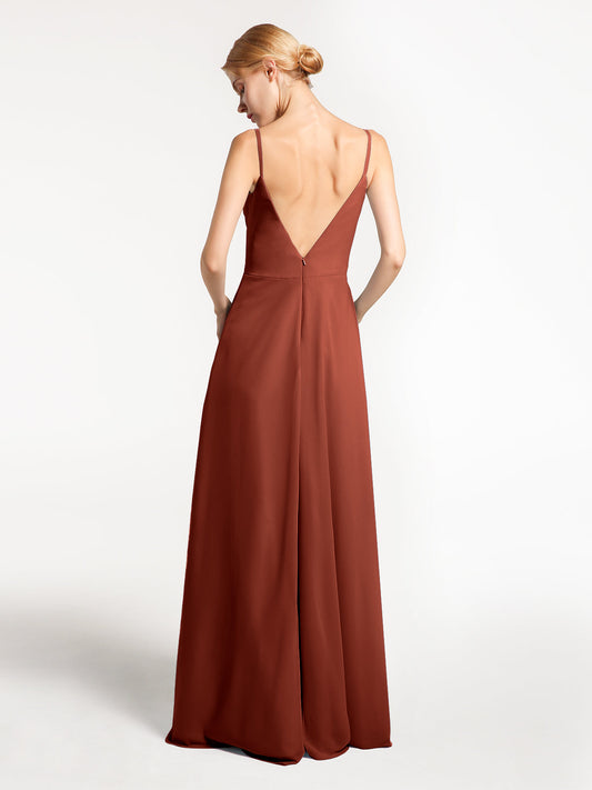 Babaroni DianaVestido de chiffon con tirantes finos y escote en forma de corazón con detalle en cascada Óxido