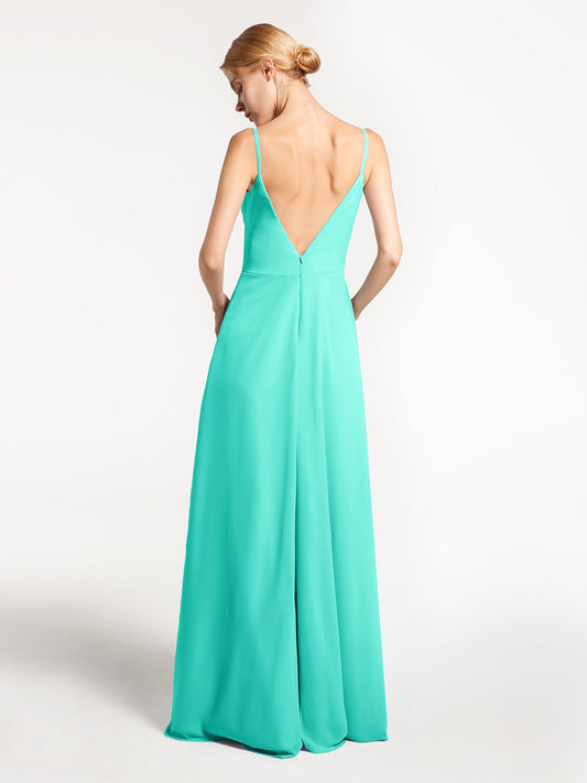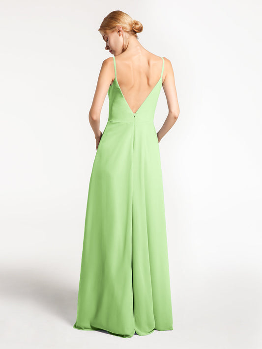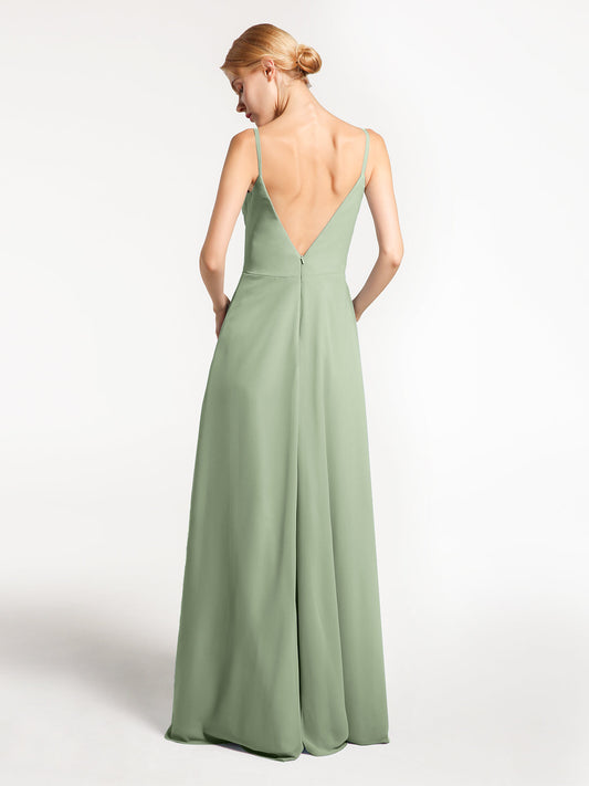 Babaroni DianaVestido de chiffon con tirantes finos y escote en forma de corazón con detalle en cascada Salvia