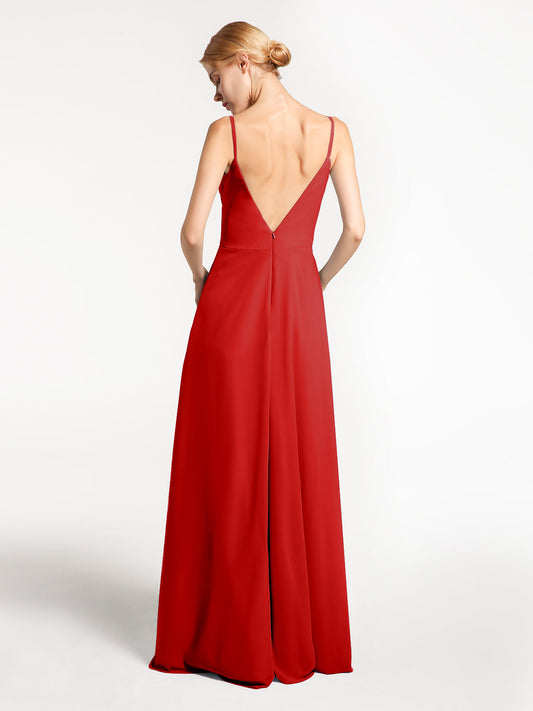 Babaroni DianaVestido de chiffon con tirantes finos y escote en forma de corazón con detalle en cascada Rojo Tallas Grandes