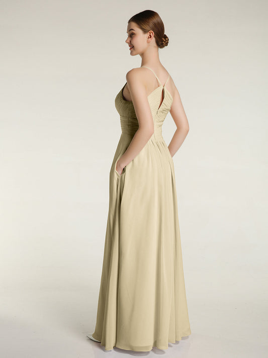 Babaroni CecileVestido de chiffon con tirantes finos y escote en V con bolsillos Champán Tallas Grandes