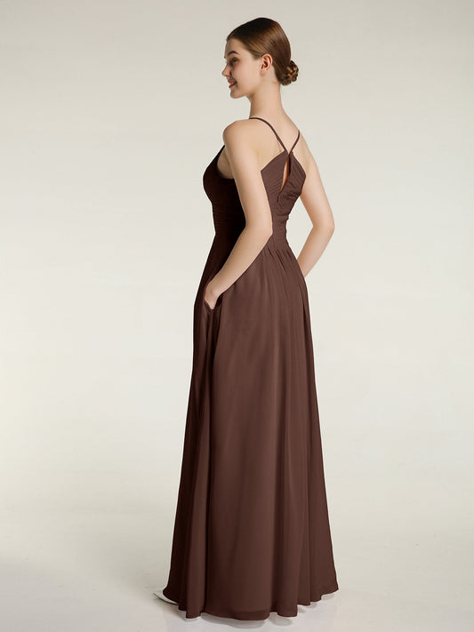 Babaroni CecileVestido de chiffon con tirantes finos y escote en V con bolsillos Chocolate Tallas Grandes