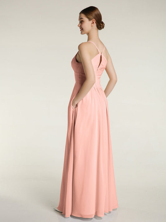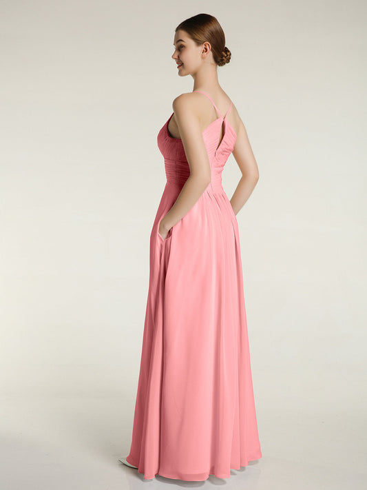 Babaroni CecileVestido de chiffon con tirantes finos y escote en V con bolsillos Coral Tallas Grandes
