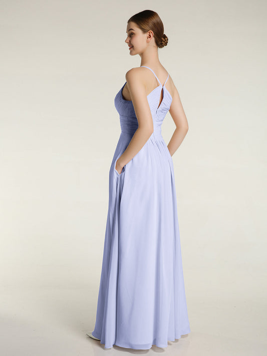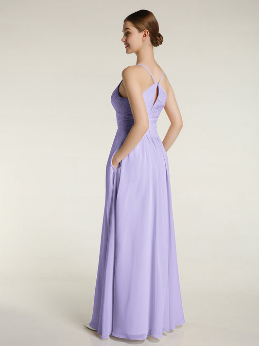 Babaroni CecileVestido de chiffon con tirantes finos y escote en V con bolsillos Lavanda Tallas Grandes