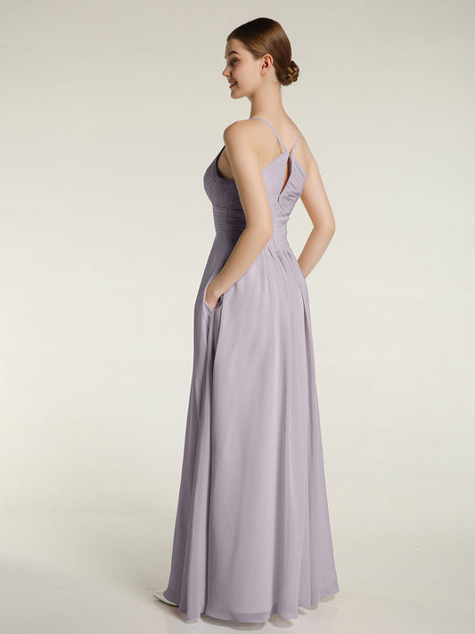 Babaroni CecileVestido de chiffon con tirantes finos y escote en V con bolsillos Crepúsculo Tallas Grandes