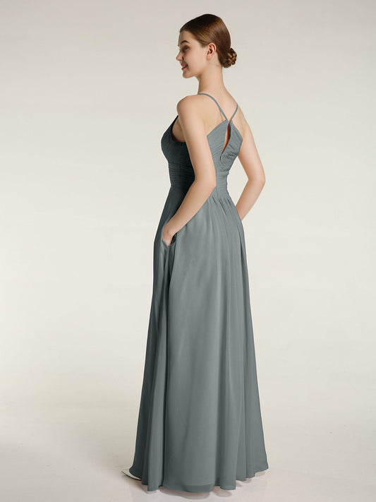 Babaroni CecileVestido de chiffon con tirantes finos y escote en V con bolsillos Gris Acero