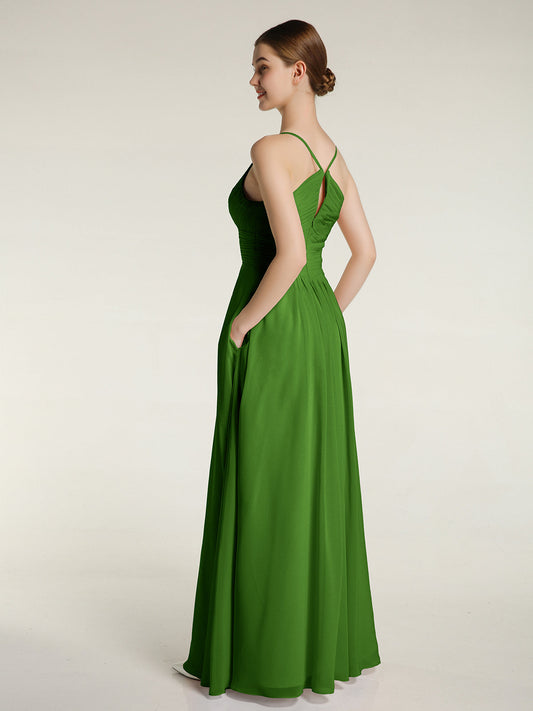 Babaroni CecileVestido de chiffon con tirantes finos y escote en V con bolsillos Musgo Tallas Grandes