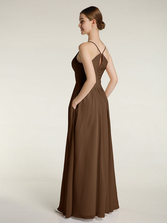 Babaroni CecileVestido de chiffon con tirantes finos y escote en V con bolsillos Marrón Tallas Grandes