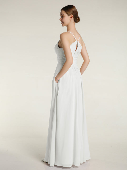Babaroni CecileVestido de chiffon con tirantes finos y escote en V con bolsillos Marfil Tallas Grandes