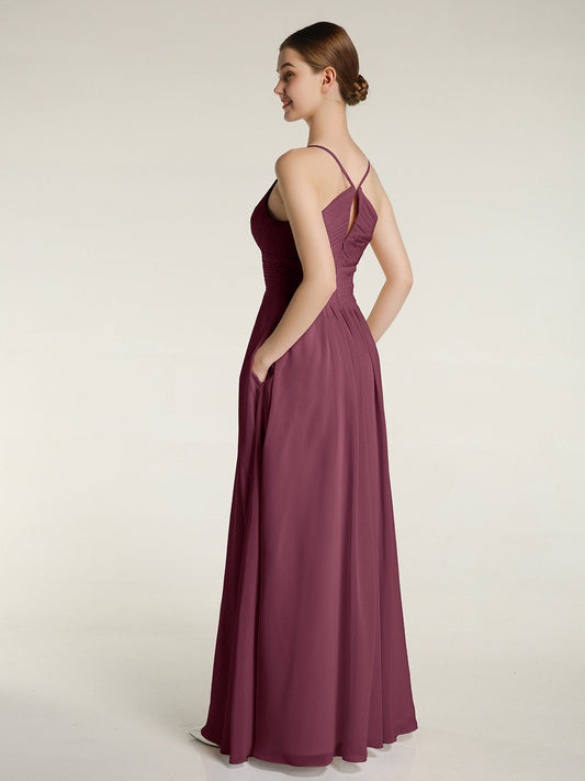 Babaroni CecileVestido de chiffon con tirantes finos y escote en V con bolsillos Morado