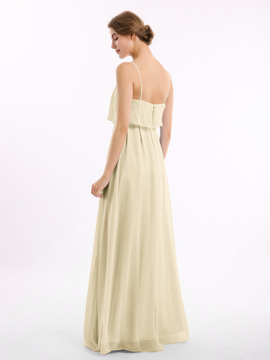 Babaroni SetllaVestido de chiffon con tirantes finos y falda tipo cascada Champán Tallas Grandes