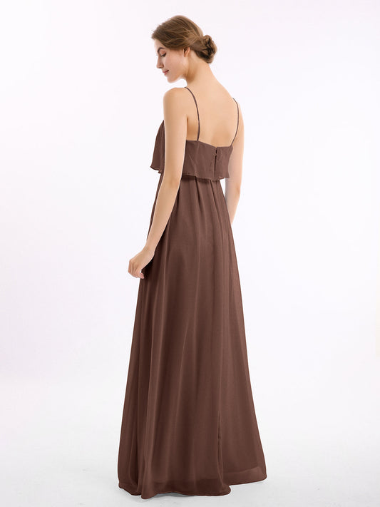 Babaroni SetllaVestido de chiffon con tirantes finos y falda tipo cascada Chocolate Tallas Grandes
