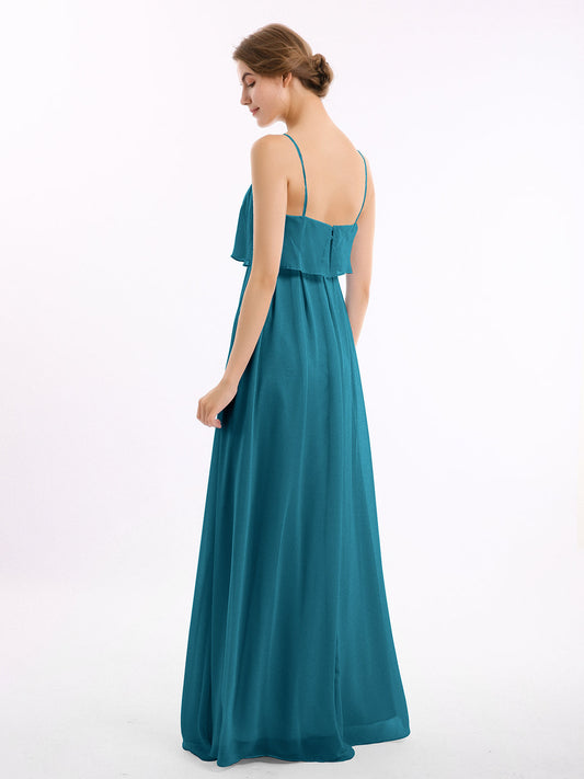 Babaroni SetllaVestido de chiffon con tirantes finos y falda tipo cascada Azul Polvoriento Tallas Grandes