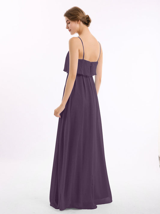 Babaroni SetllaVestido de chiffon con tirantes finos y falda tipo cascada Ciruela Tallas Grandes