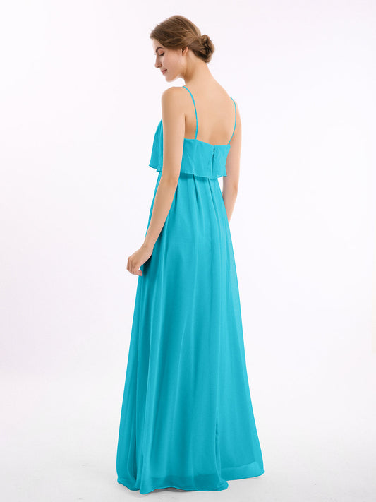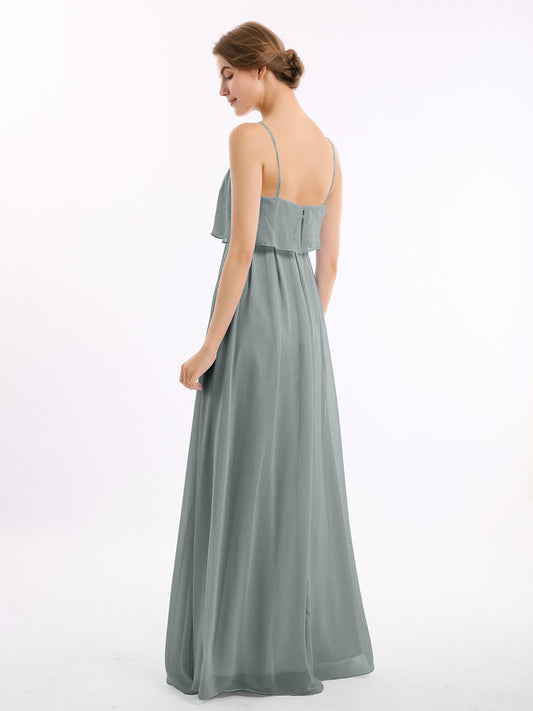 Babaroni SetllaVestido de chiffon con tirantes finos y falda tipo cascada Crepúsculo Tallas Grandes