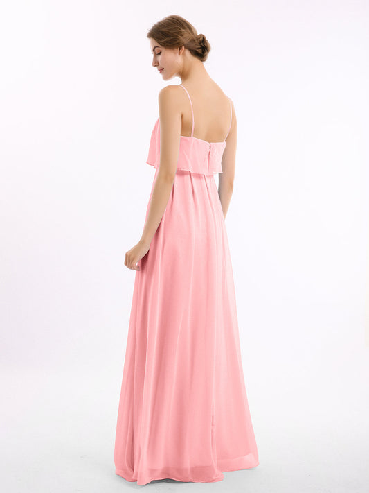 Babaroni SetllaVestido de chiffon con tirantes finos y falda tipo cascada Coral Tallas Grandes