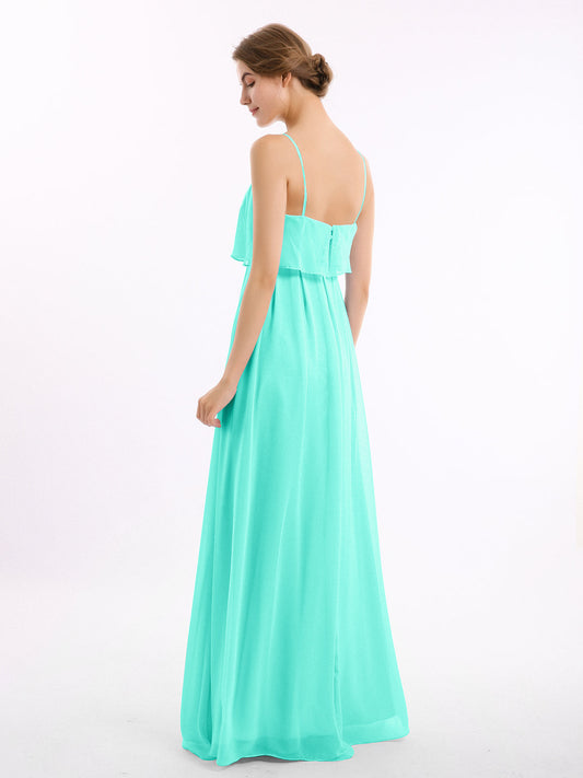Babaroni SetllaVestido de chiffon con tirantes finos y falda tipo cascada Turquesa Tallas Grandes