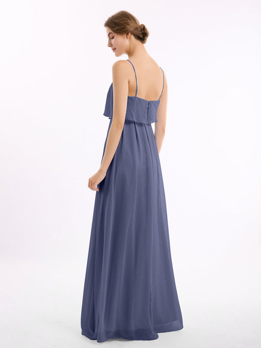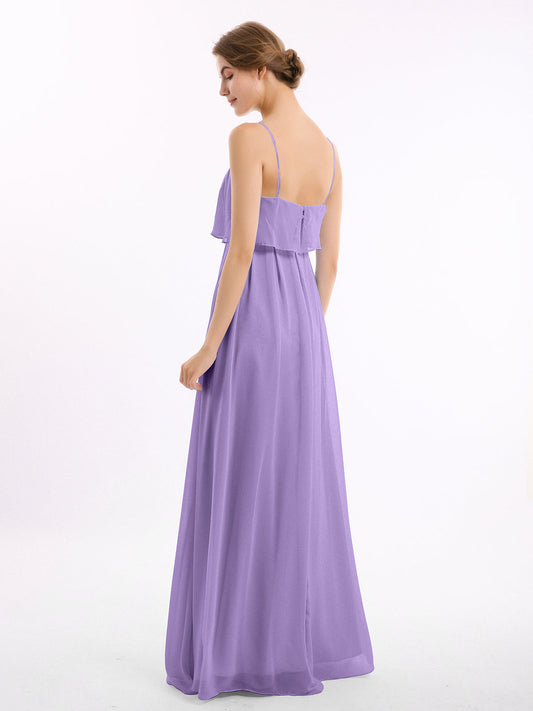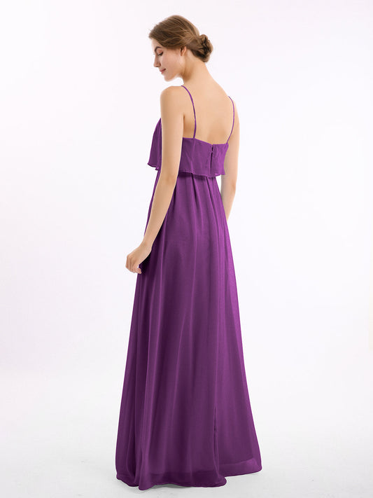 Babaroni SetllaVestido de chiffon con tirantes finos y falda tipo cascada Uva Tallas Grandes