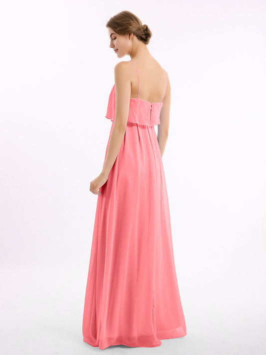 Babaroni SetllaVestido de chiffon con tirantes finos y falda tipo cascada Sandía Tallas Grandes